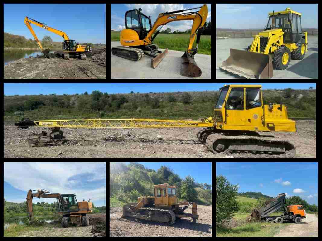 Бульдозер ДЗ-171.3 – потужна техніка для планування та вирівнювання території. Екскаватор гусеничний JCB JS220LC (довжина стріли 16 м) – ідеальний для копання на великих глибинах та важкодоступних місцях. Міні-екскаватор гусеничний JCB 8030ZTS – компактний і маневровий, ідеальний для роботи в обмежених просторах. Екскаватор колісний Case 788P – універсальна техніка для швидких і ефективних робіт на твердій поверхні. Екскаватор драглайн Warynski 415A – призначений для днопоглиблення та великих земляних робіт. Екскаватор АТЕК-999Е-1 – потужний механізм для важких земляних робіт та будівництва. КАМАЗ – надійний вантажний автомобіль для транспортування матеріалів.