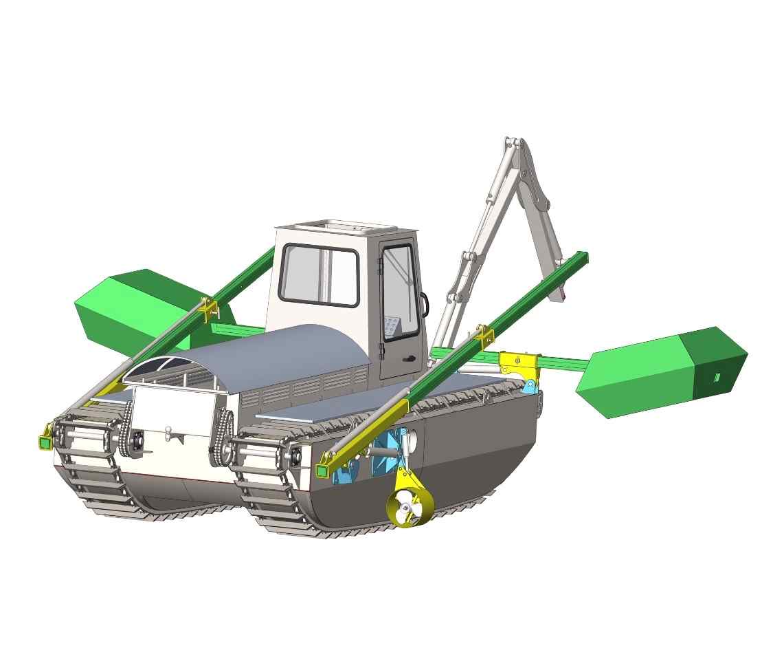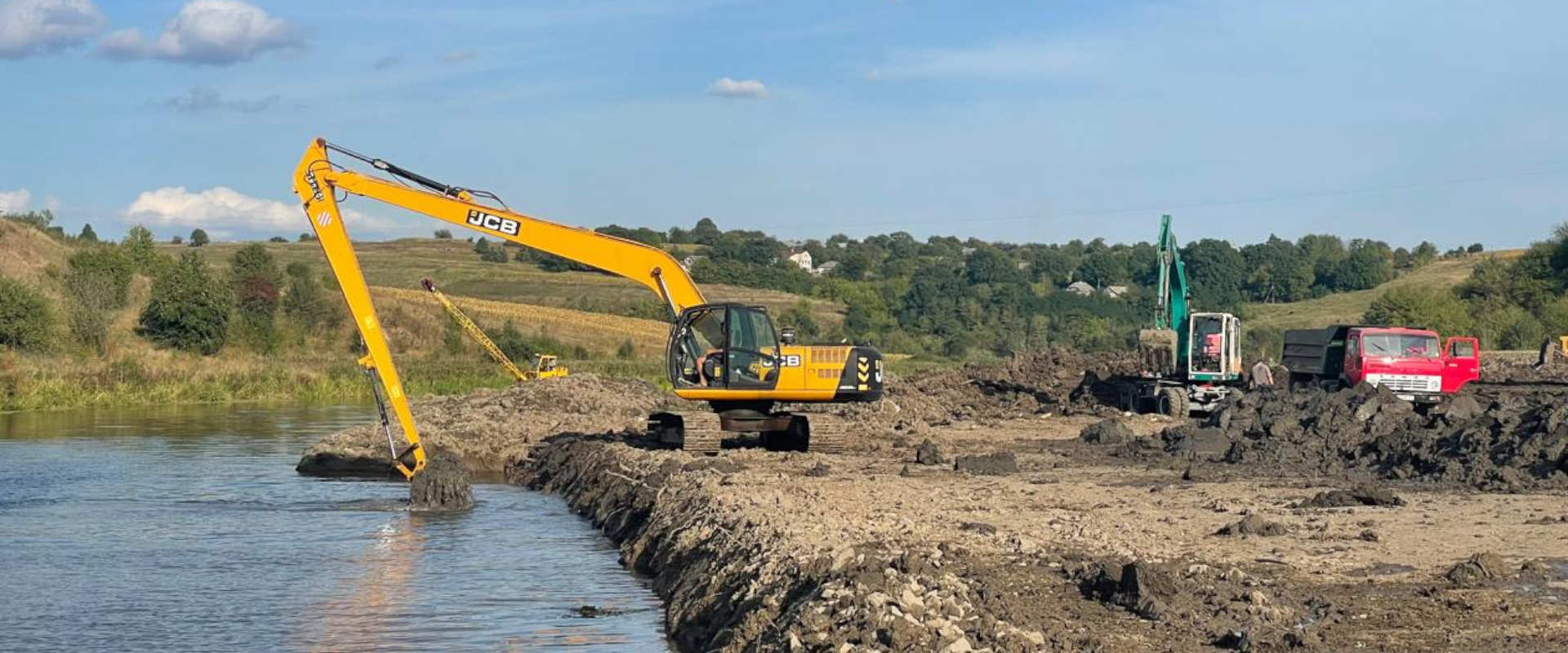 - Екскаваційні роботи: Використовує спеціалізовані екскаватори та навантажувачі для видалення мулу, піску та рослинності з дна водойм. Оснащення з гнучкими стрілами дозволяє працювати навіть у важкодоступних місцях.